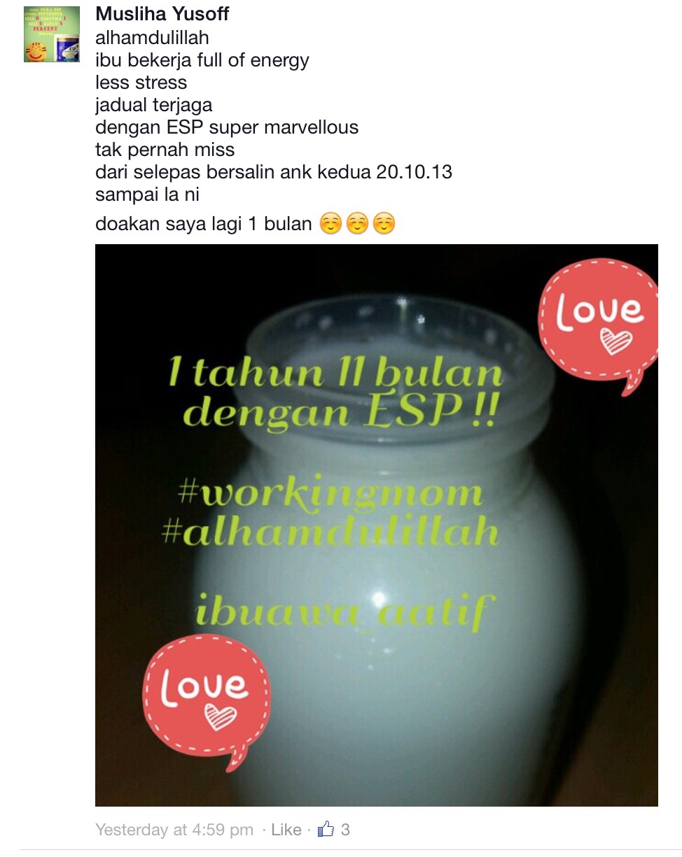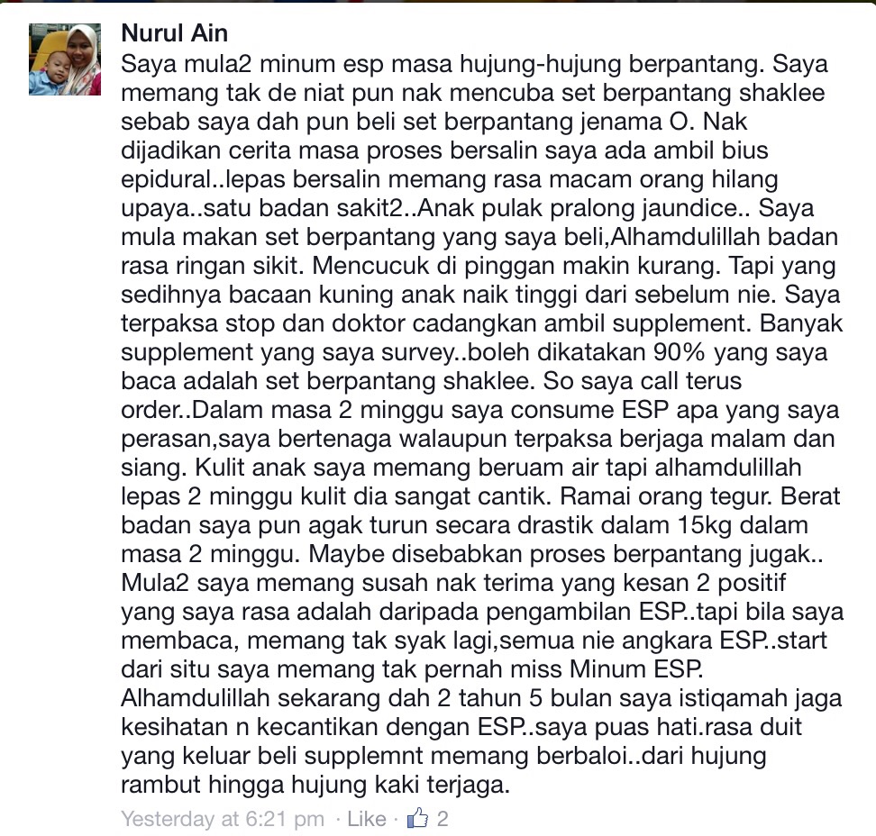 Rajin-rajin bancuh ESP bagi yang dah ada stok tu ok.. Yang baru nak cuba boldh hubungi saya di 0192939886 (Hadhatina). COD Shaklee di Shah Alam Batu 3 atau area USJ Heights/USJ3.